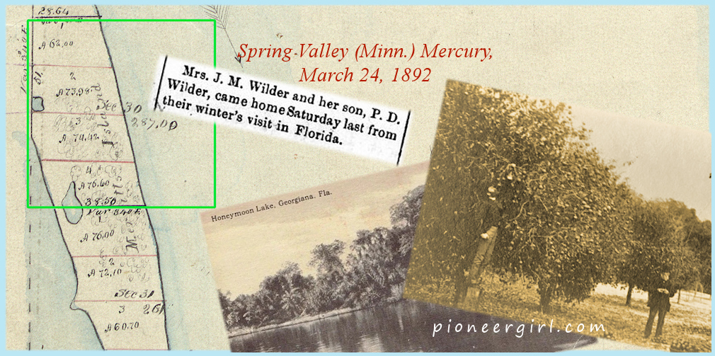 THIS WAS NEWS TO ME — I was looking at Spring Valley (Minnesota) newspapers last week, and there was mention in the March 24, 1892, Spring Valley Mercury that Angeline and Perley Wilder had just returned to Spring Valley from their winter’s visit in Florida.