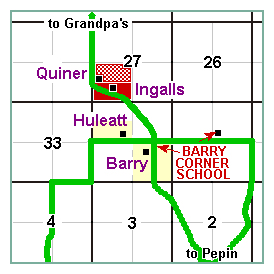 Charles Ingalls’ Land Dealings in Pepin County. In the fall of 1863, Charles Ingalls and his brother-in-law, Henry Quiner, paid $335 for 160 acres in Pepin Township, Pepin County, Wisconsin. The Ingallses settled on the south half of the property, the Quiners on the north. The path that went by the log cabin cut through Charles Ingalls’ 80 acres and is County Road CC today. Pierce County begins a half-mile to the north; the town of Pepin is 7 miles south on the north shore of Lake Pepin, a wide portion of the Mississippi River. Barry Corner School was originally on one of the corners at the crossroads on James Barry’s farm; this is the location of the schoolhouse when Mary and Laura went to school there. A brick schoolhouse was later built on the north side of the road about a half mile to the east of the crossroads. Neither schoolhouse is standing today.
